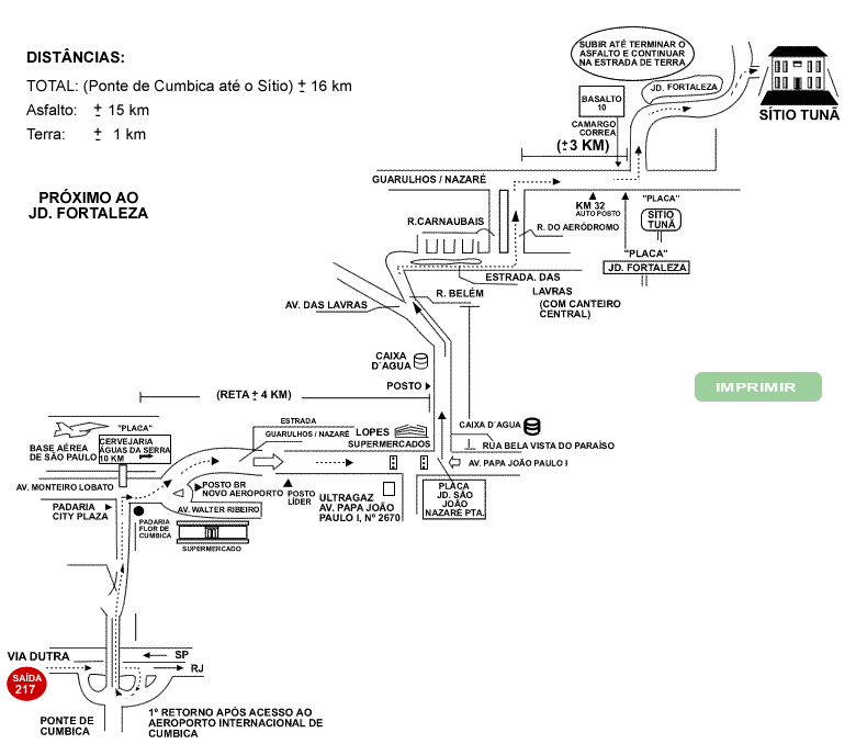 menos 3 km. Passando a empresa BASALTO 10, entre para o Jardim Fortaleza e depois siga as indicações do Sítio Tunã.